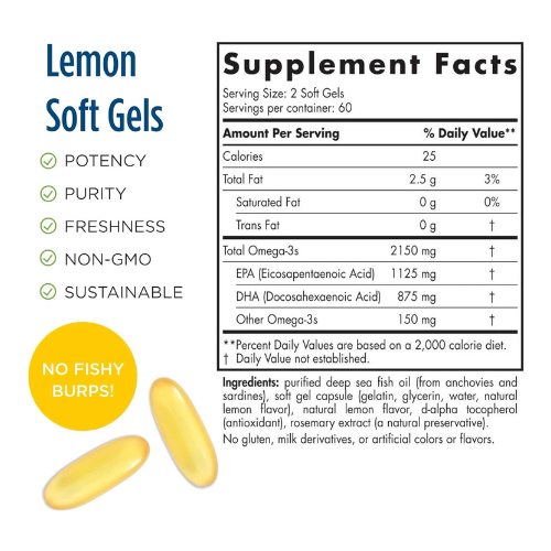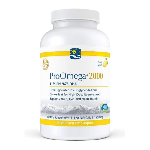 Give your body the ultimate support for heart, brain, and overall health with Pro O-Mega 2000. This high-potency fish oil supplement delivers 1125 mg EPA and 875 mg DHA in every serving, providing a powerful source of omega-3 fatty acids essential for daily wellness. With a refreshing natural lemon flavor, these softgels are easy to take and leave no fishy aftertaste.